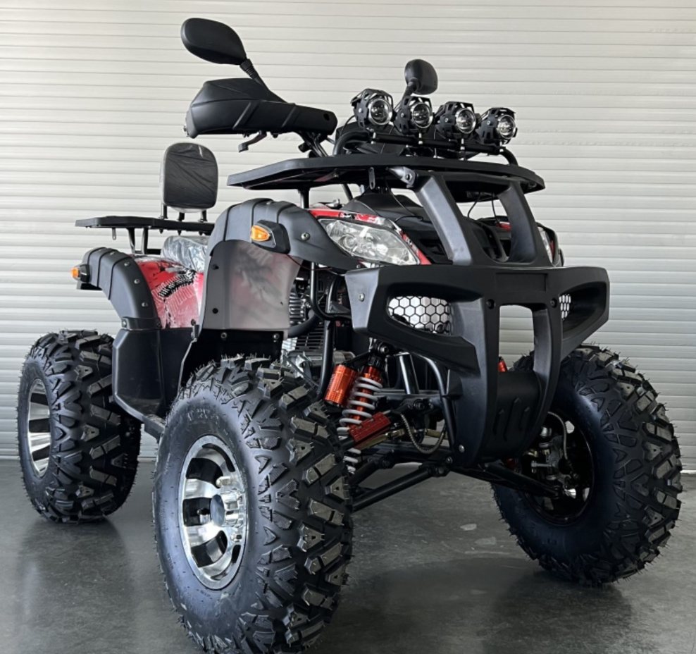Квадроцикл оснащен двигателем 161 QMK на 200 см3 c воздушно-маслянным охлаждением и автоматической коробкой передач с реверсом, дисковыми тормозами, ручным и электростартером.