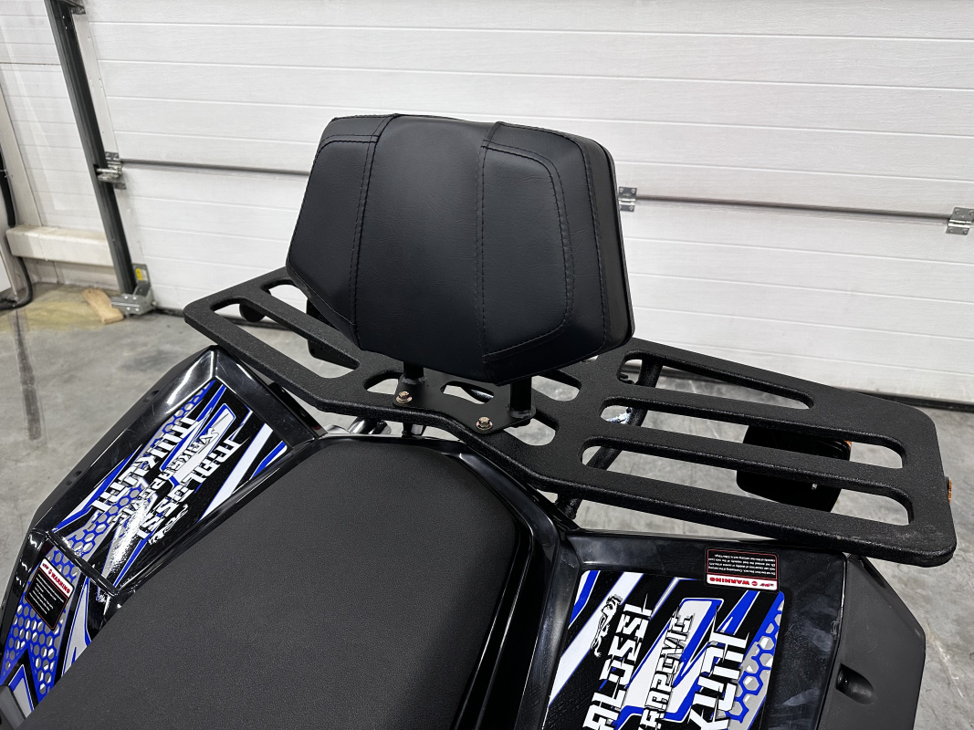 Мотор 200 куб см с антивибрационным валом, собранным из комплектующих TIADA, позволяющий безопасно крутить двигатель до 12000 оборотов, с выходной мощностью 25 л.с. работает в паре с японским карбюратором, настроенным на повышенное давление при подаче топлива, что обеспечивает ровную и стабильную работу двигателя. CDI от BOSCH улучшает сгорание топливной смеси, снимает нагрузку исключая пропуски зажигания. Алюминиевый масляный радиатор, совместно с керамическим напылением поршня защищают мотор от перегрева в любых условиях. Вариатор Malossi SpA – отвечает за разгон и хорошее тяговое усилие, за счет выверенной компоновки грузов, что обеспечивает сцепление на более низких оборотах в отличии от конкурентов.