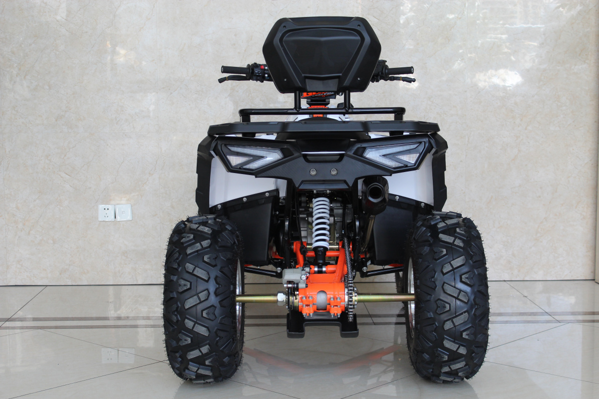 Разноширокая колея передних колес и задней оси обеспечивают вам хорошую управляемость и высокую проходимость. Узкие передние колеса позволяют квадроциклу острее понимать желание райдера и мгновенно откликаться на изменение траектории, многорычажная независимая передняя подвеска делает квадроцикл устойчивее.