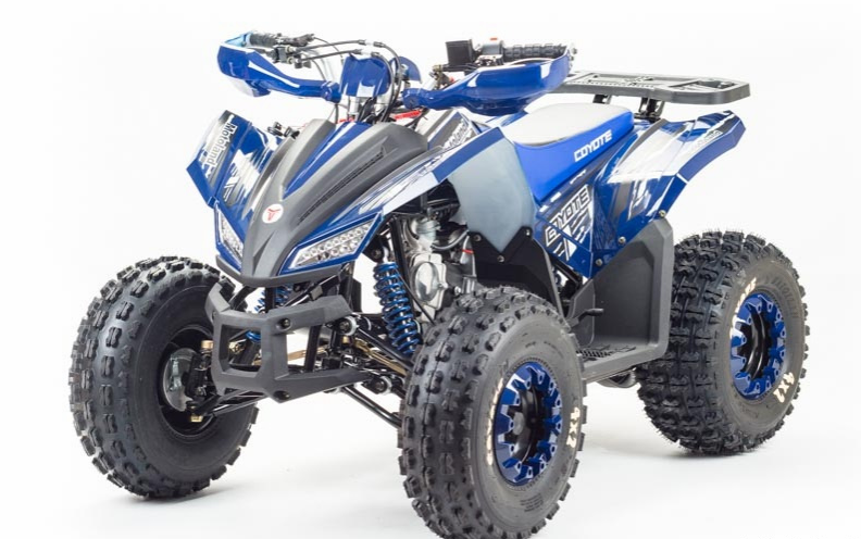 Motoland Coyote 125 - cтильный,современный, универсальный квадроцикл подойдет вашему ребенку, как мальчику так и девочке. Утилитарный дизайн Motoland Coyote 125 разработан с учетом вкусов современного поколения и понравится всем без исключения. Его 8-дюймовые колеса на хорошей внедорожной резине с легкостью преодолеют все преграды в виде грязи, песка, луж и кочек. А что еще нужно для веселых покатушек в выходные дни? У этого квадроцикла отличная управляемость в любых условиях эксплуатации,благодаря грамотной настройке подвески. Motoland Coyote 125 оснащен автоматической коробкой передач с реверсом, который установлен на усиленной раме, что дает уверенность в прочности конструкции. Ваш ребенок быстро овладеет навыками езды на данной технике и получит массу запоминающихся эмоций.