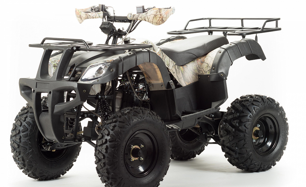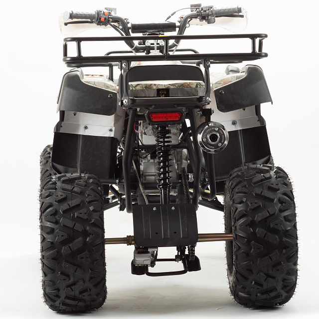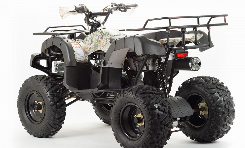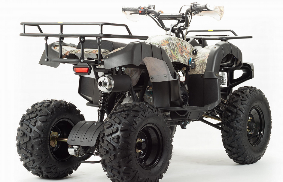 Яркий дизайн не оставит равнодушным никого. Блогодаря мощному и надежному двигателю, отличной жесткой раме и полуавтоматической коробке (не нужно выжимать сцепление), можно идеально подбирать нужные вам обороты. Злой рисунок протектора будет вгрызаться в грунт, исключая пробуксовку.
