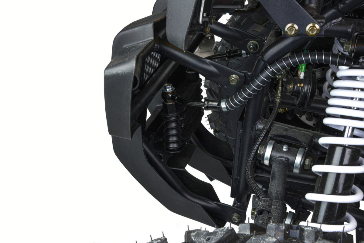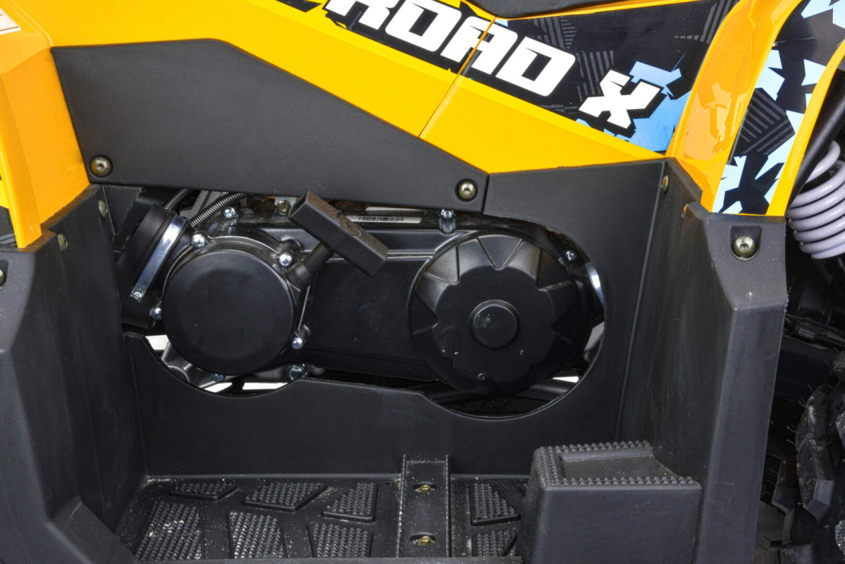 Квадроцикл 200 ALL ROAD X это улучшенная модель 200 ALL ROAD, которая сочетает в себе еще больше комфорта, при еще больших габаритах, простоту обслуживания и хорошую проходимость в самых разных условиях использования. Больше комфорта за счет подрамника двигатела на сайлентблоках, дополнительно установленного на основную раму квадроцикла, который гасит вибрацию с двигателя. Благодаря отлично настроенной подвеске, управление и передвижение на нем становится очень комфортным. Все неровности и кочки будут проглатываться без проблем, ведь на нем установлены колеса на 10 дюймов.