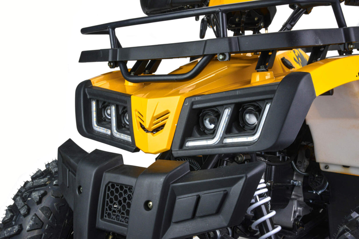 Эта модель уже оснащена двигателем 163 QMK на 200 см3 c воздушно-маслянным охлаждением, балансирным валом и автоматической коробкой передач с реверсом, гидравлическими дисковыми тормозами по переднему и заднему контуру, ручным и электростартером, LCD приборной панелью, зеркалами заднего вида, полностью светодиодной оптикой, мощным и большим передним и задним багажником, защитой для рук и USB зарядкой. Он отлично подойдет для семейного активного отдыха, а также для рыбалки и охоты. Вы получите незабываемые впечатления от вождения.