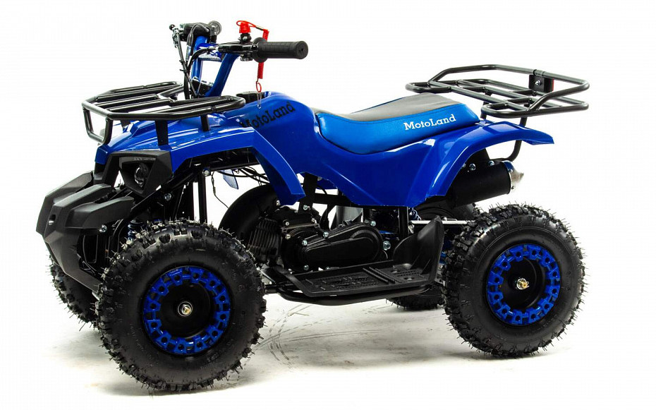 В комплектации 50-кубового мини-ATV, двухтактный 50-кубовый двигатель, замок родительского контроля и яркий, прочный, монохромный пластик.