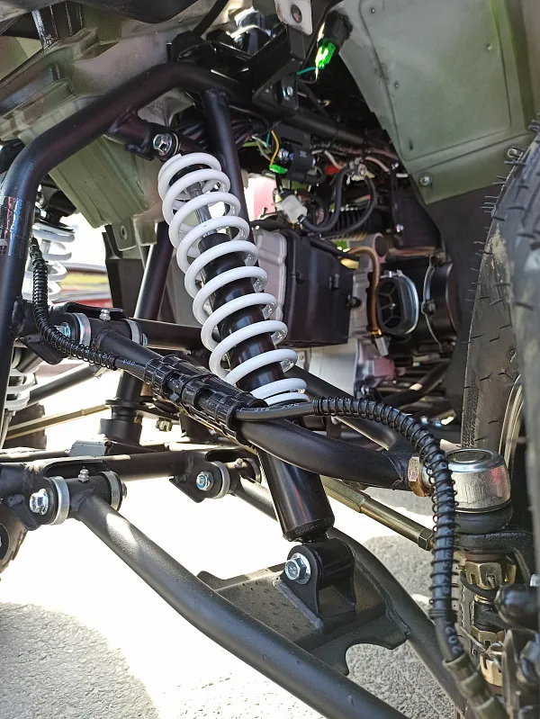 Под капотом квадроцикла скрывается надежный одноцилиндровый четырехтактный двигатель ZONSHENG с воздушным охлаждением, мощностью 22 л.с. с электрозапуском. Герметичная электрическая система на базе японских компонентов и аккумулятор повышенной емкости обеспечивают стабильную работу в любых условиях.
