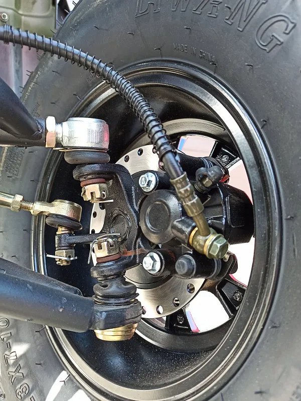 Высокая мобильность достигается благодаря резине повышенной проходимости AT22x7-10 на передней оси и AT22x10-9 на задней, а также эффективным гидравлическим дисковым тормозам.