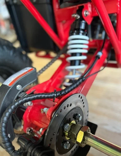- Дисковые гидравлические тормоза спереди и сзади, что позволит легко тормозить в любых условиях, даже маленьким детям.