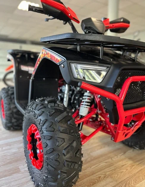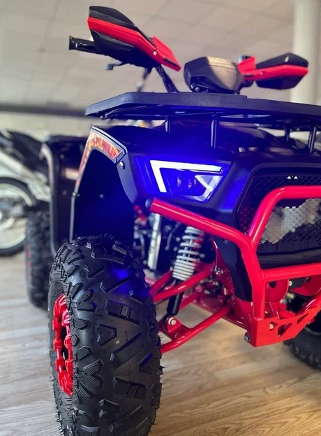 - Наличие поворотников и современных светодиодных фонарей спереди и сзади - улучшает безопасность техники на дороге и внешний вид самого квадроцикла.