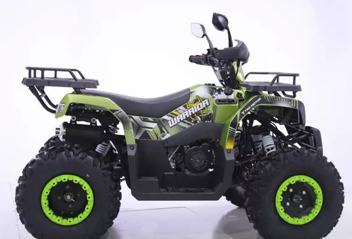 Бензиновый квадроцикл Yacota WARRIOR для подростков и взрослых. Транспорт представлен в современном формате. Двигатель 200 куб, вариатор F-N-R, 17 лошадиных сил. Оборудован металлическим передним и задним багажником, имеет приборную панель, яркую светодиодную оптику, зеркала, защиту рук, фаркоп, удобные широкие подножки. Тормоза передние дисковые, задние - дисковые. Разгоняется до 65 км/ч. Максимальная нагрузка на квадроцикл 180 кг.