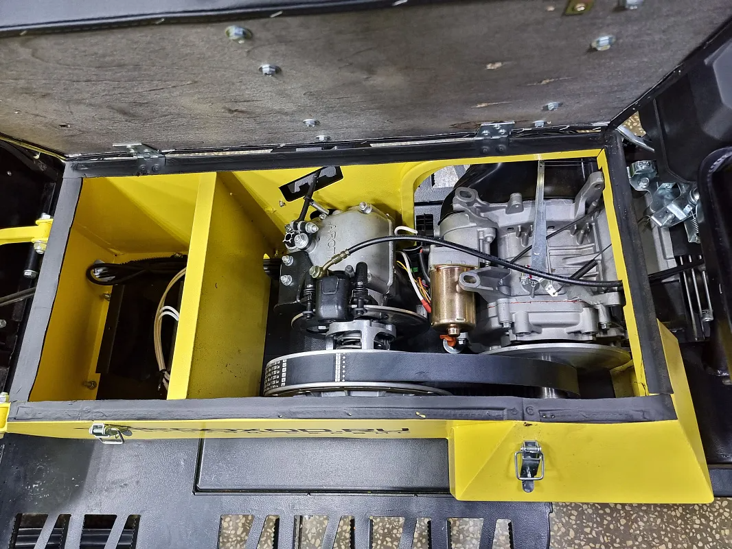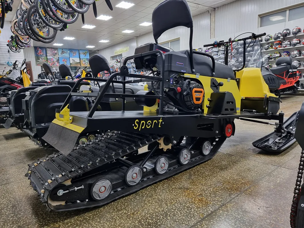 В базовую комплектацию миниснегохода Егерь Спорт Лонг входят: электрический запуск двигателя, механический тормоз и коробка реверса.