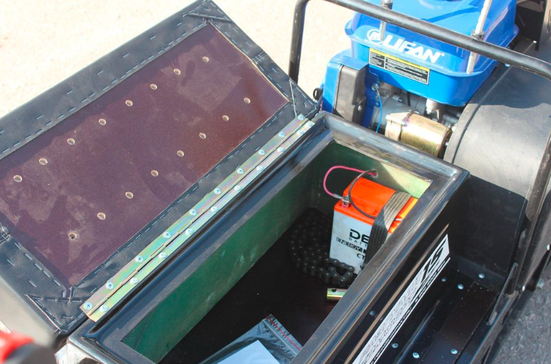 Модель оснащена широкой гусеницей 500 мм, установленной сзади, как в любом классическом мотобуксе. Гусеница выполнена на основе резинотканевого материала, который обладает повышенной стойкостью к повреждениям. Высота грунтозацепа составляет 25 мм.