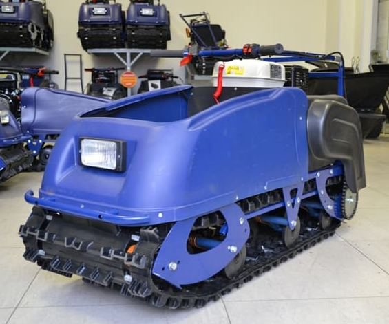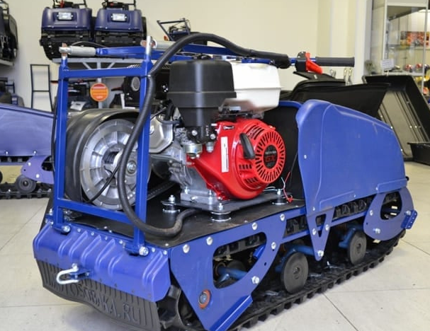 Заднее расположение двигателя позволяет легко управлять буксировщиком. Для правильной развесовки буксировщика рекомендуется загружать передний багажный отсек грузом 10-20 кг. Например канистрой с топливом. При заднем расположении двигателя, звезда ведущего вала гусеницы находится в более безопасном от ударов месте.