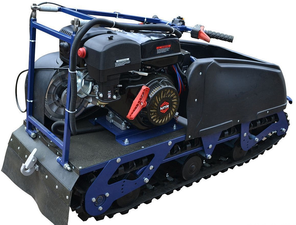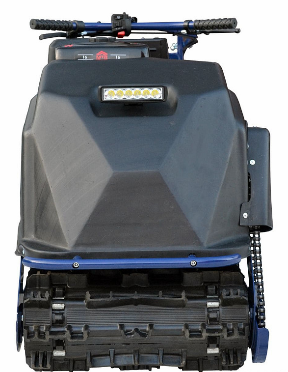 Заднее расположение двигателя позволяет легко управлять буксировщиком. Для правильной развесовки буксировщика рекомендуется загружать передний багажный отсек грузом 10-20 кг. Например канистрой с топливом. При заднем расположении двигателя, звезда ведущего вала гусеницы находится в более безопасном от ударов месте.