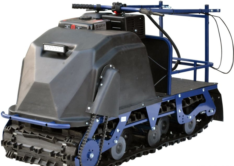 Мотобуксировщик относится к средним утилитарным буксировщикам. Гусеница Барс. Идеальна для глубокого рыхлого снега. Наилучшая проходимость достигается в сочетании гусеницы "Барс" и склизовой подвески DS (Deep Snow). Гусеницы "Барс" в сочетании с катковой подвеской позволяет использовать буксировщик в условиях отсутствия неглубокого снежного покрова и на льду. Гусеница "Барс" имеет самый высокий грунтозацеп среди буксировщиков на рынке, обеспечивает максимальную проходимость. Гусеница "Барс" имеет грунтозапы препятствующие боковому скольжению, что незаменимо при движении вдоль склонов.