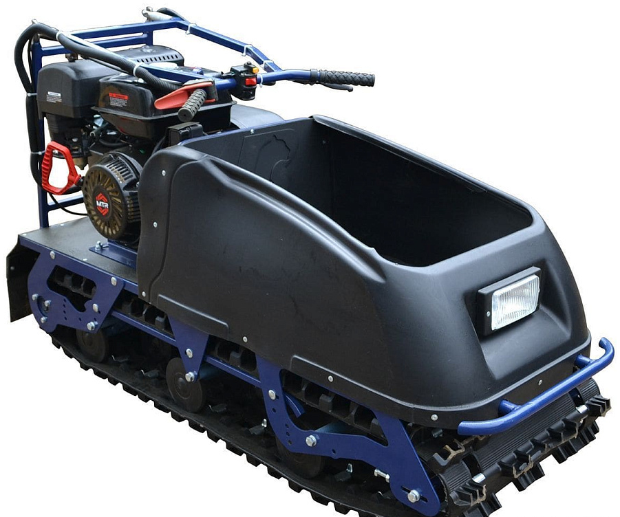 Заднее расположение двигателя позволяет легко управлять буксировщиком. Для правильной развесовки буксировщика рекомендуется загружать передний багажный отсек грузом 10-20 кг. Например канистрой с топливом. При заднем расположении двигателя, звезда ведущего вала гусеницы находится в более безопасном от ударов месте.