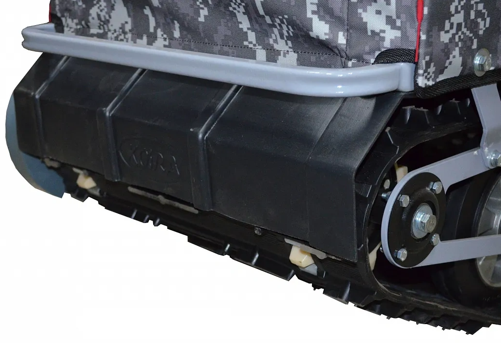 Большие (ø200 мм) алюминиевые колеса с резиновым ободом на подпружиненных осях |