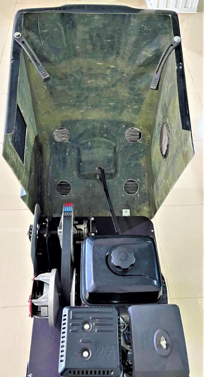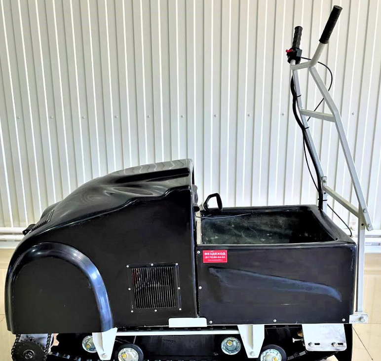 - буксировщик оснащен 4-х тактным двигателем 15 л.с., что позволяет перевозить до 200 кг груза и развивать скорость до 35 км/ч