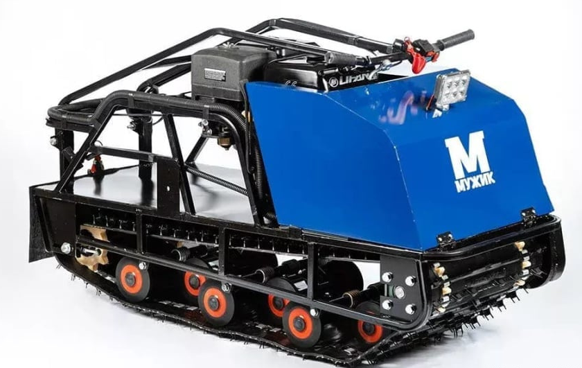 Данный мотобуксировщик изготовлен из доступных запчастей, большинство из которых можно найти практически в любом магазине мототехники или по продаже снегоходов. Конструкция мотобуксировщика, такова, что демонтаж большинства узлов и деталей происходит без снятия других деталей.