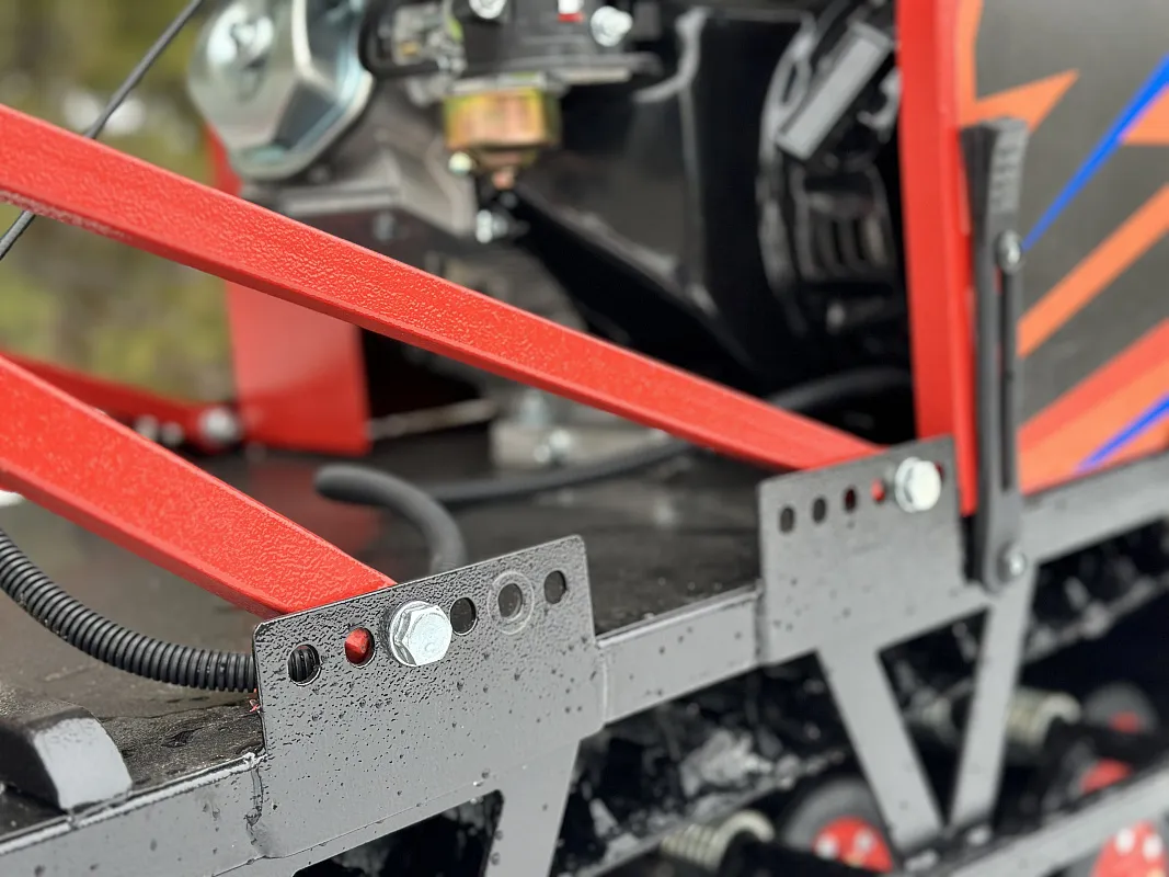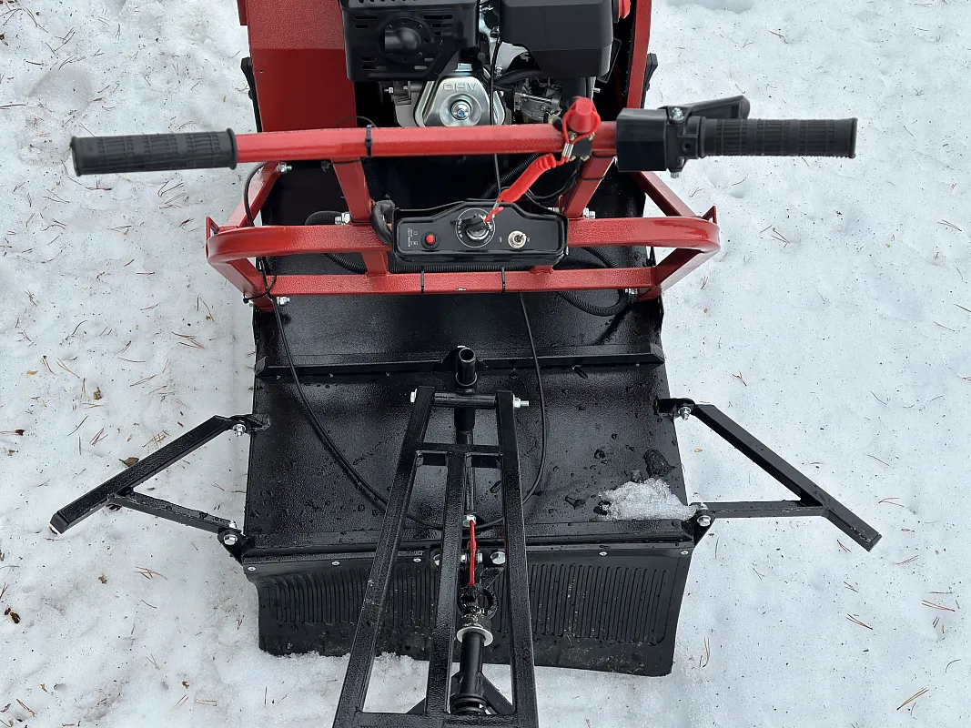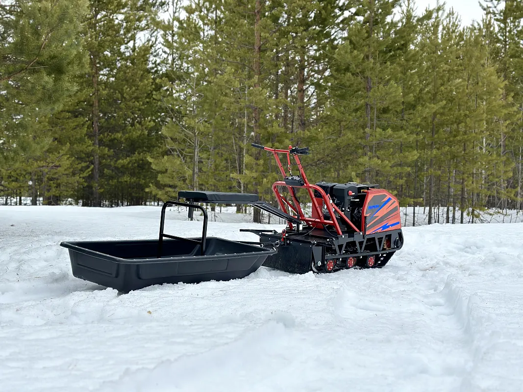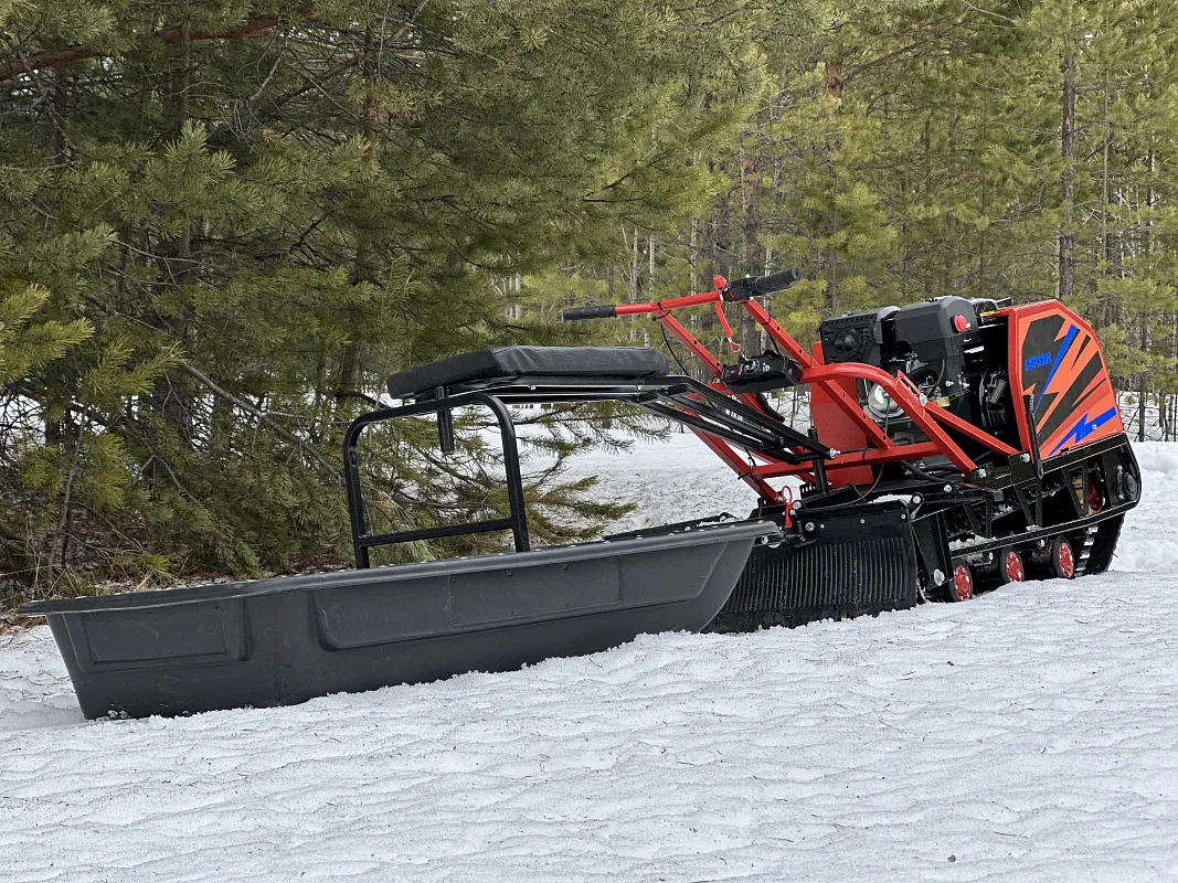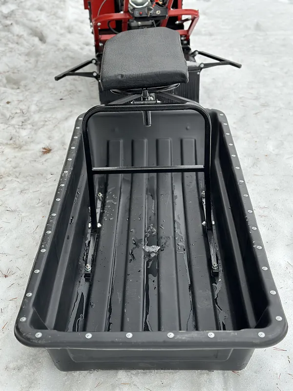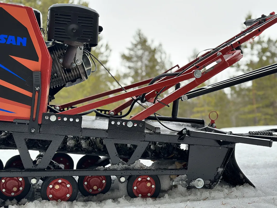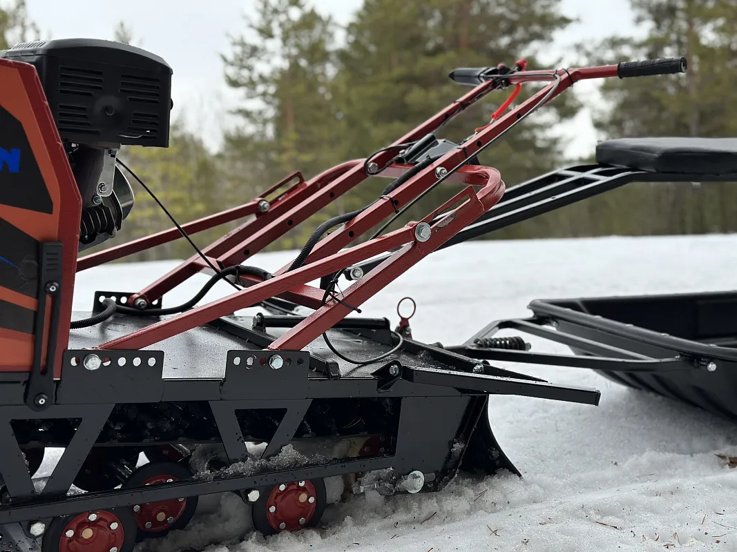 В раму мотобуксировщика также интегрированы складные подножки, для увеличения маневренности, идеально подходит для лесной местности и узких тропинок, где нужно максимально острое управление между стволов деревьев!