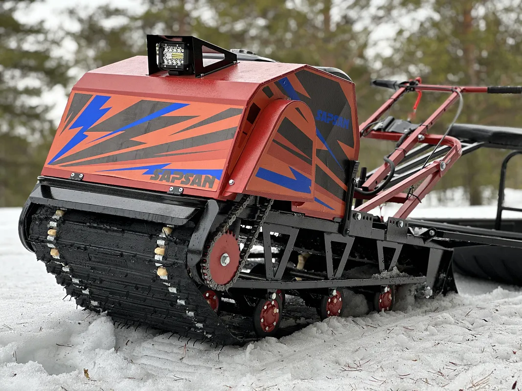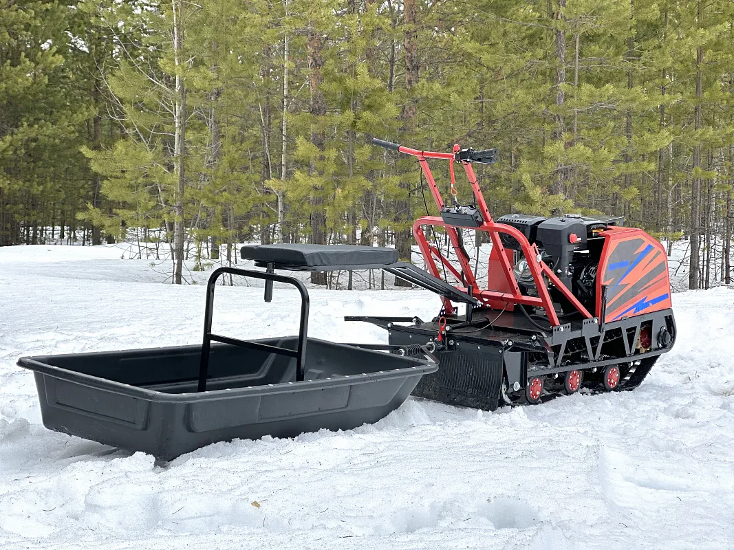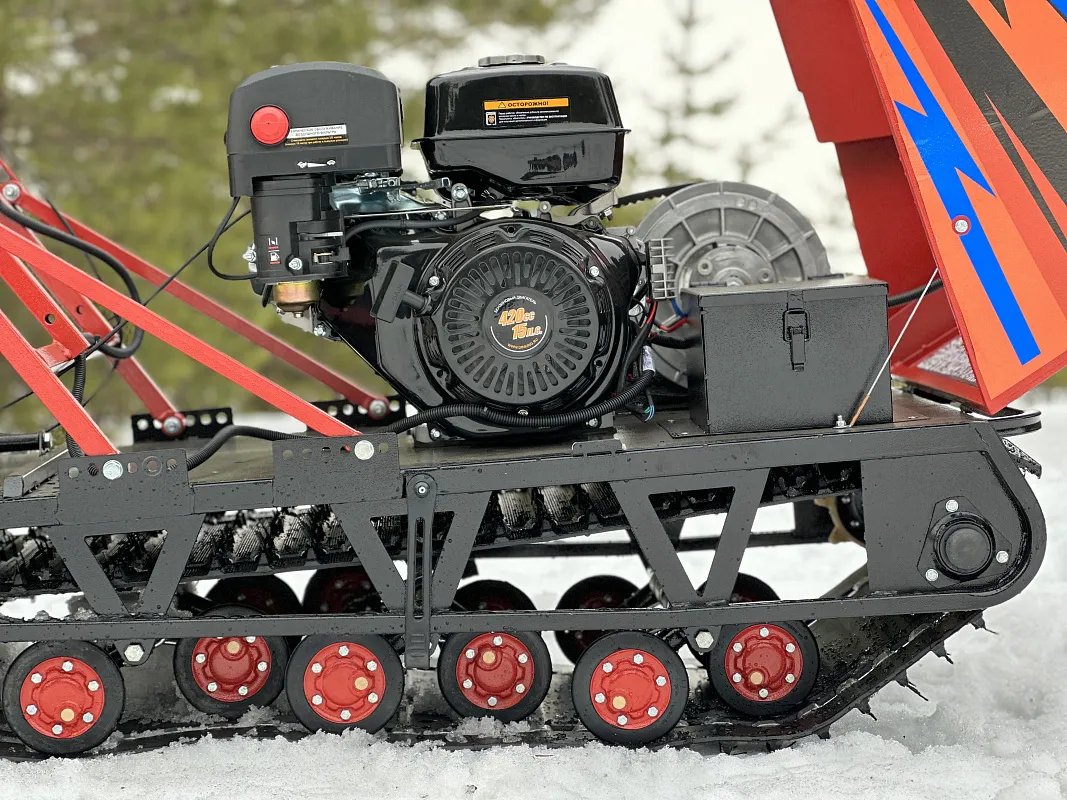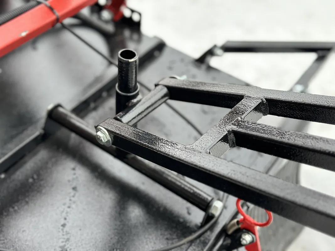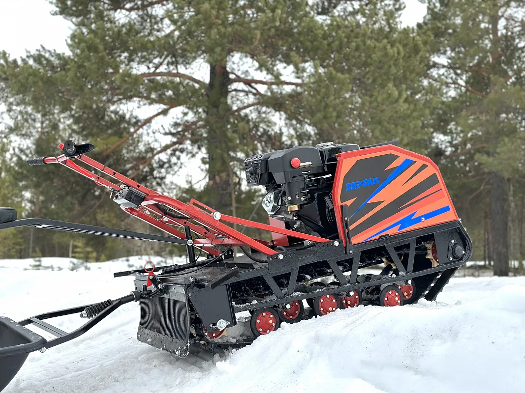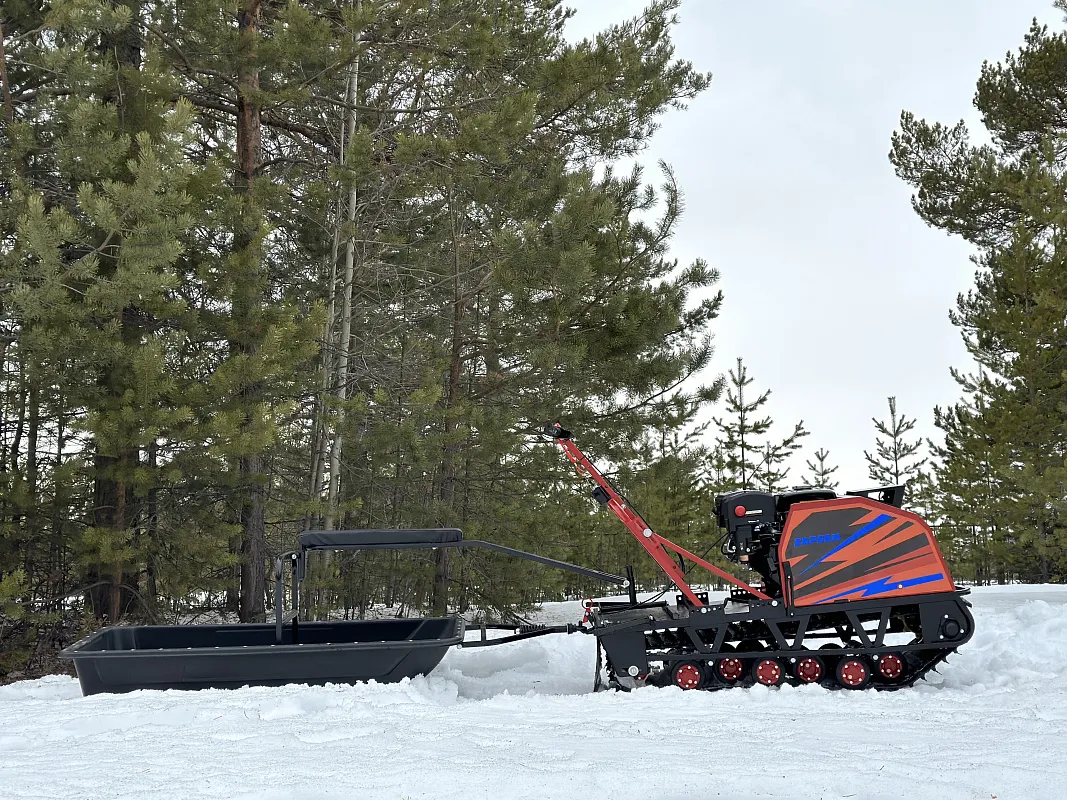 В раму мотобуксировщика также интегрированы складные подножки, для увеличения маневренности, идеально подходит для лесной местности и узких тропинок, где нужно максимально острое управление между стволов деревьев!