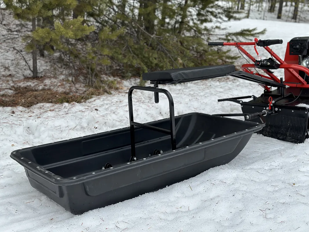 В комплекте с санями и встроенным сиденьем, собирается за 1 минуту, без дополнительных болтов!