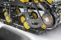 В конструкции мотовездехода используется цельная резиновая гусеница Composit шириной 500 мм. Гусеница в сочетании с катковой подвеской способна проходить спокойно по льду и даже по территории без снега.