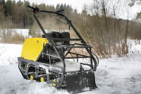 В конструкции мотовездехода используется цельная резиновая гусеница Composit шириной 500 мм. Гусеница в сочетании с катковой подвеской способна проходить спокойно по льду и даже по территории без снега.