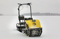 В конструкции мотовездехода используется цельная резиновая гусеница шириной 500 мм. Гусеница в сочетании с катковой подвеской способна проходить спокойно по льду и даже по территории без снега.