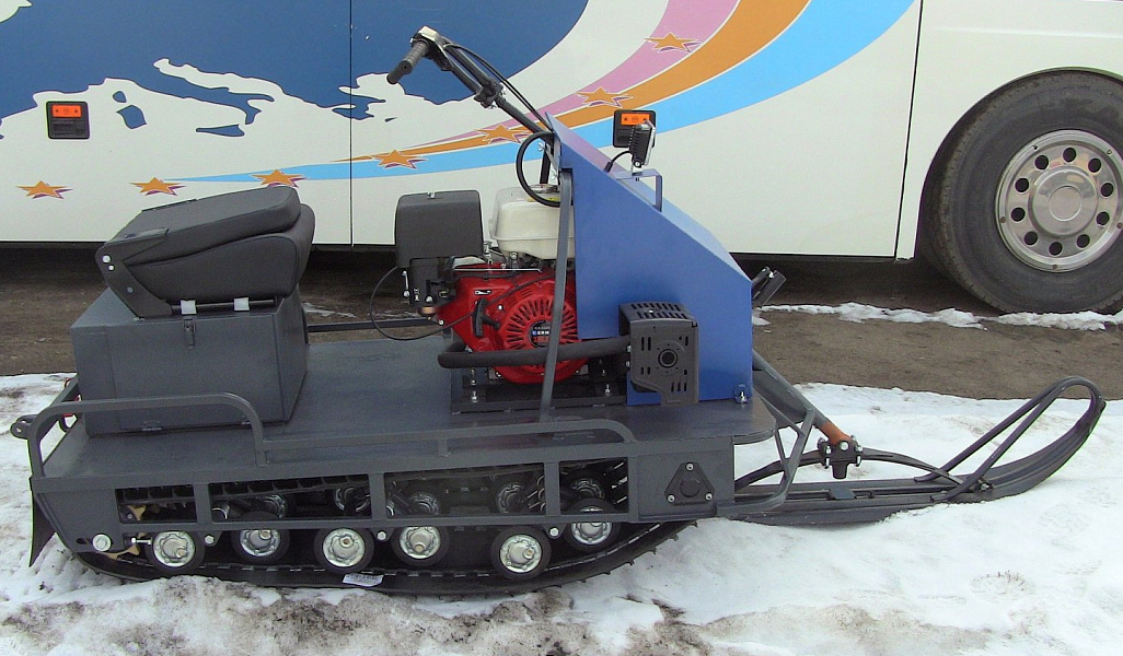 В зависимости от поставленной цели за несколько минут на мотобуксировщик легко устанавливается руль с сиденьем, превращая его в полноценный снегоход. Можно использовать как простой мотобуксировщик, а сделав трансформацию, как снегоход.