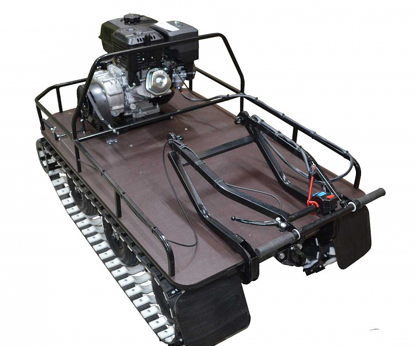 Гусеничная ходовая часть. Две широкие гусеницы, шириной - 210 мм, расположенные друг от друга на расстояние - 430 мм, что обеспечивает буксировщику большую точку опоры и при езде по неровным поверхностям не дают ему заваливаться набок. Гусеничная лента изготовлена из резинового полотна классификации «Арктик» с высоким содержанием высококлассного капрона и резины. Раздельные траки из высокопрочного и износостойкого полиуретана и стальные грунтозацепы по паре на каждый трак