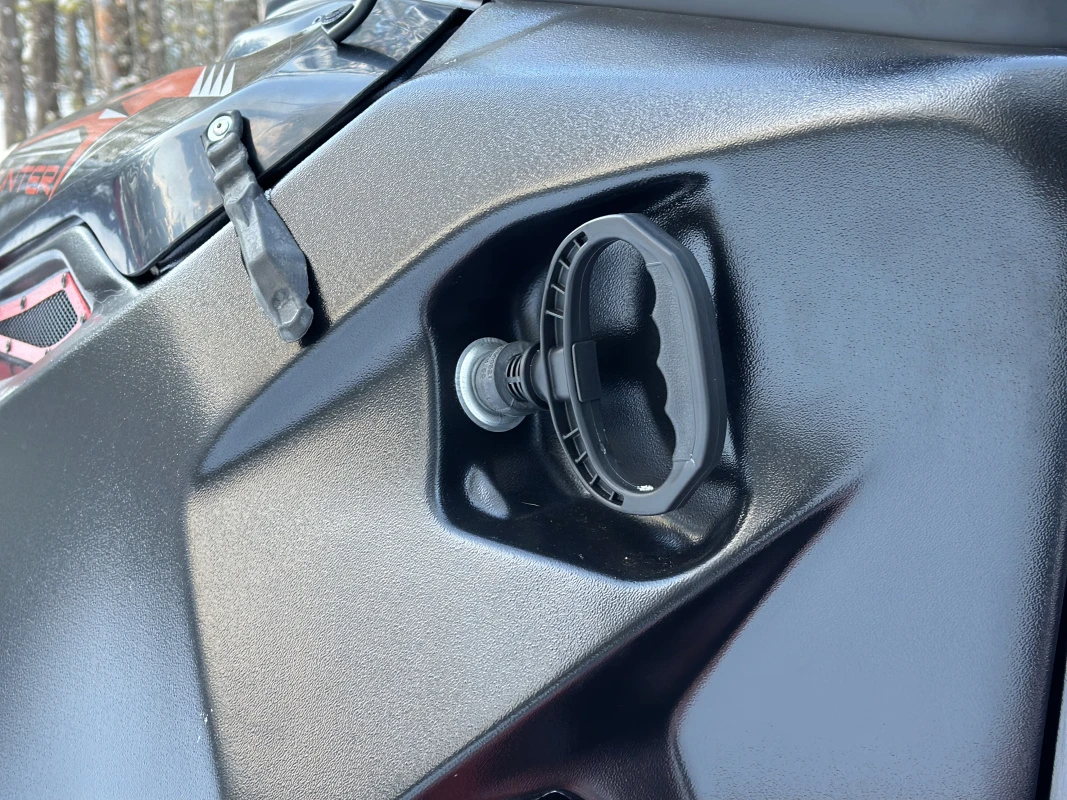 Руль снегохода IKUDZO, имеет приятные, эргономичные ручки с подогревом, а также современные блоки управления. Спинка пассажира также оборудована подогревом ручек пассажира и имеет удобную геометрическую форму. Современная панель приборов, имеет множество функций, включая показания уровня топлива, скорости, пробега, температуры двигателя и множество других функций.