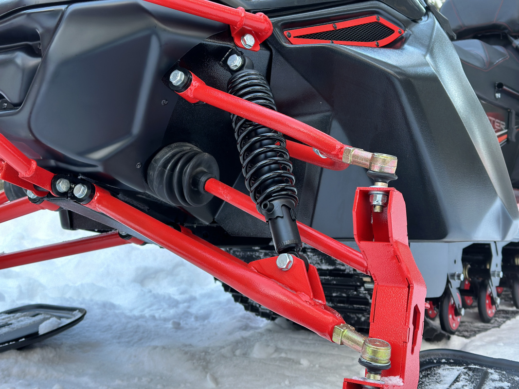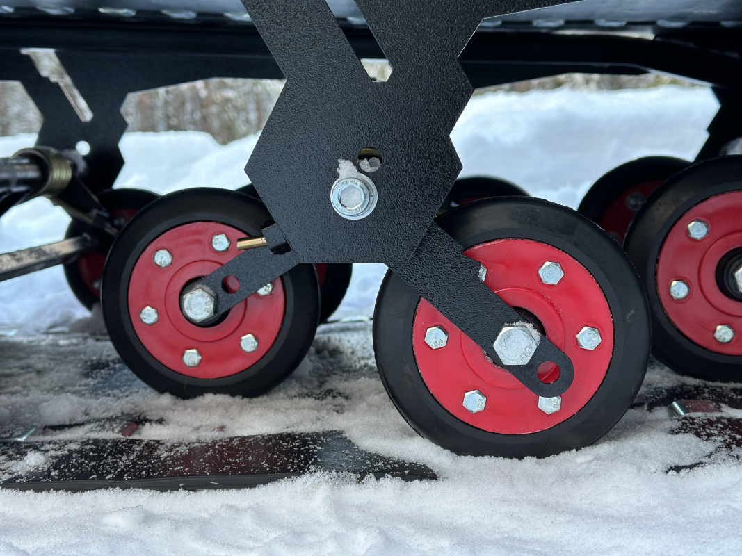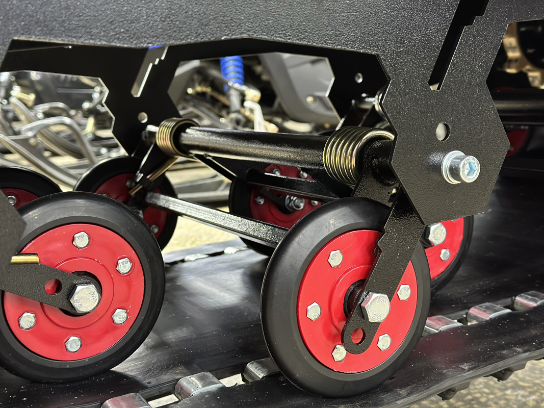 Отдельная гордость компании IKUDZO это уникальная подвеска. Запатентованное строение катков с японскими подшипниками значительно увеличивает срок эксплуатации без необходимости частого обслуживания. Благодаря открытому пространству, подвеска IKUDZO не забивается снегоход и не боится наледи.