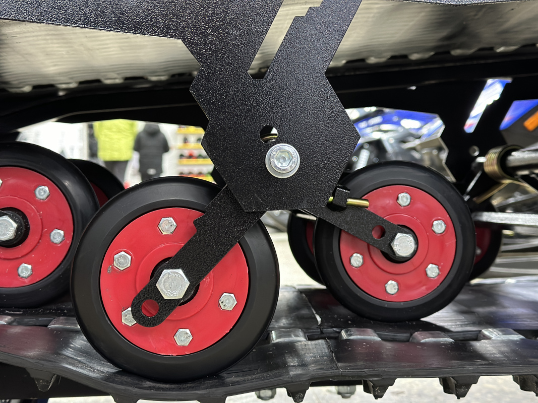 Отдельная гордость компании IKUDZO это уникальная подвеска. Запатентованное строение катков с японскими подшипниками значительно увеличивает срок эксплуатации без необходимости частого обслуживания. Благодаря открытому пространству, подвеска IKUDZO не забивается снегоход и не боится наледи.