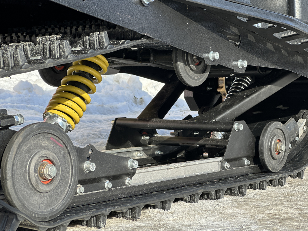 Отдельная гордость компании IKUDZO это уникальная подвеска. Запатентованное строение катков с японскими подшипниками значительно увеличивает срок эксплуатации без необходимости частого обслуживания. Благодаря открытому пространству, подвеска IKUDZO не забивается снегоход и не боится наледи.