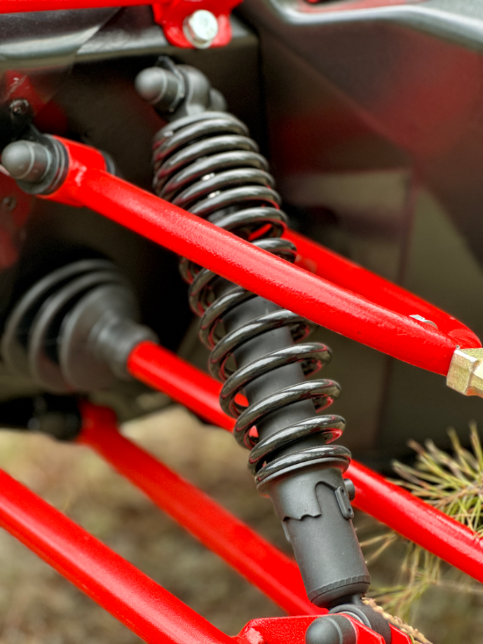 Снегоход IKUDZO имеет современную многорычажную подвеску с регулируемыми амортизаторами.