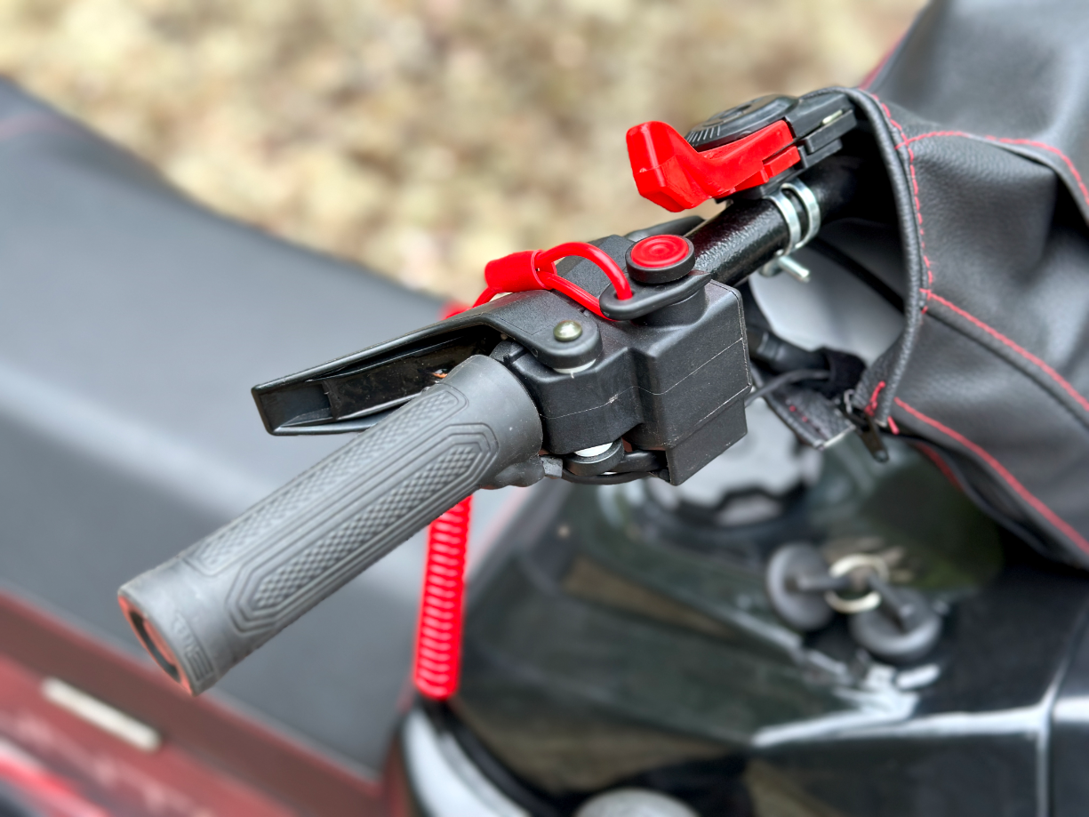 Руль снегохода ИКУДЗО, имеет приятные, эргономичные ручки с подогревом, а также современные блоки управления.