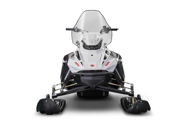 Передняя подвеска двух рычажная, хорошо показавшая себя на снегоходе SF150L, при ходе подвески в 140 мм, позволяет сохранять геометрию колеи лыж в пределах 4-5 мм. Это дает отличную управляемость, устойчивость, маневренность в условиях прохождения неровностей.