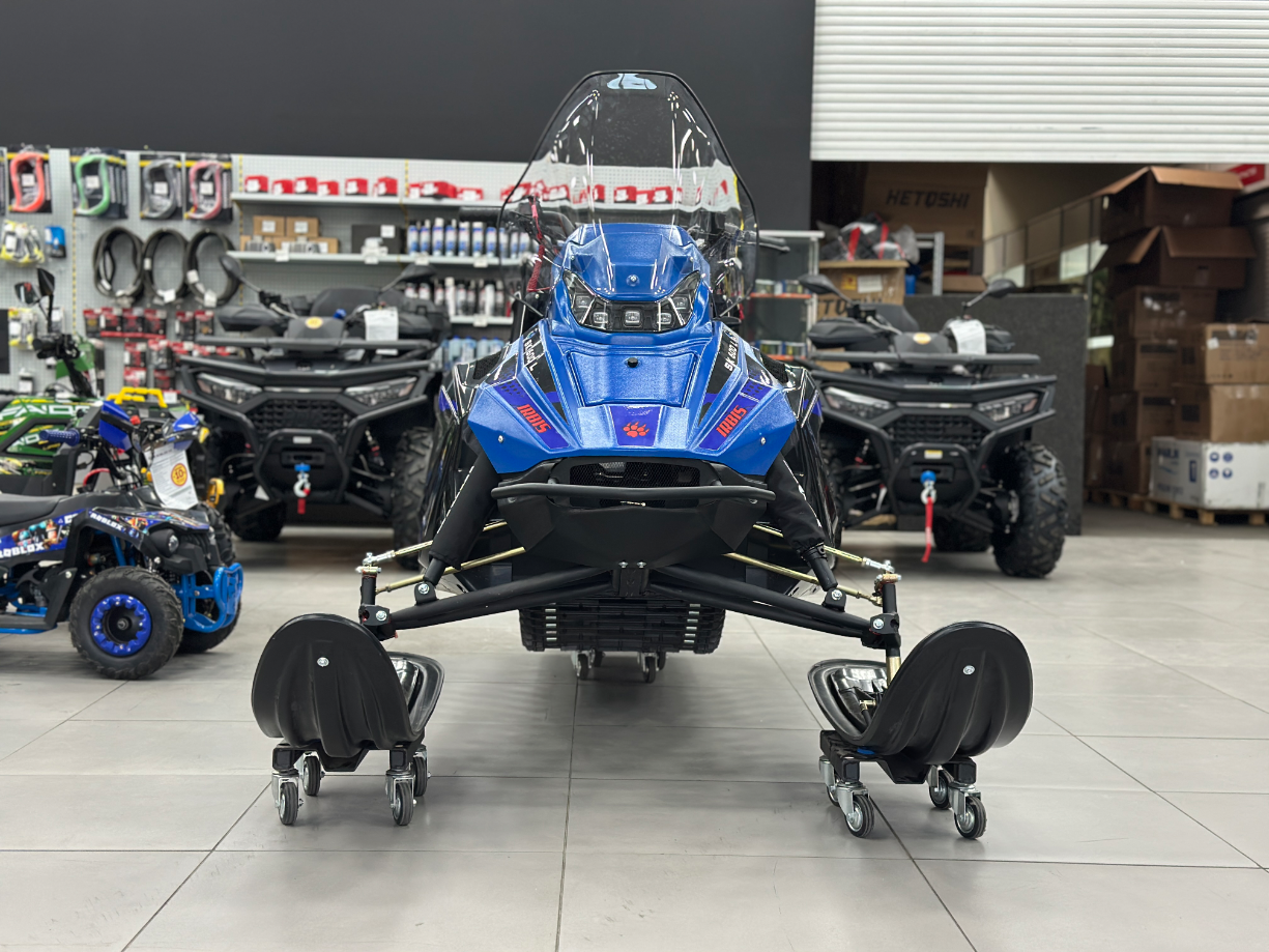 Передняя подвеска двух рычажная, хорошо показавшая себя на снегоходе SF150L, при ходе подвески в 140 мм, позволяет сохранять геометрию колеи лыж в пределах 4-5 мм. Это дает отличную управляемость, устойчивость, маневренность в условиях прохождения неровностей.