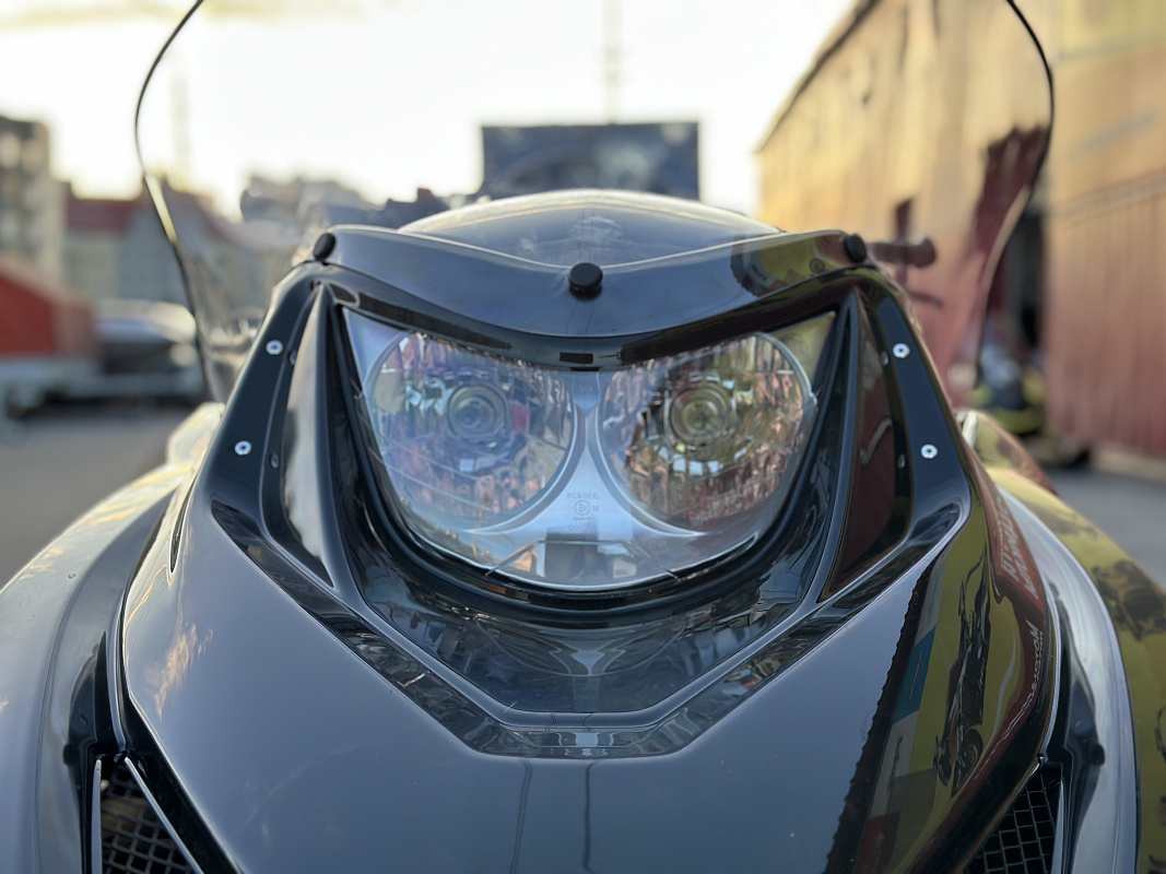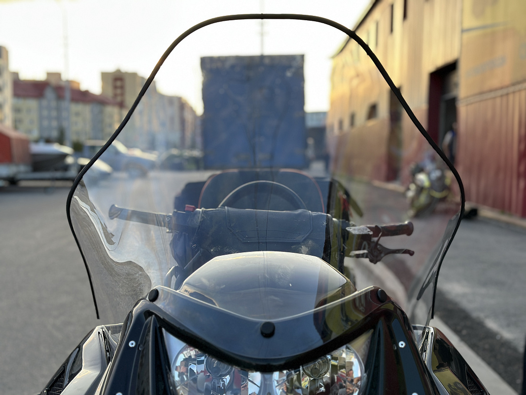 Лобовое стекло из эластичного пластика с антибликовыми свойствами дает отличную защиту от встречного ветра и снега, обеспечивает безопасность и делает поездку более комфортной.