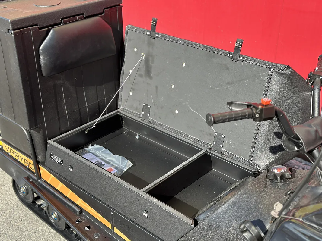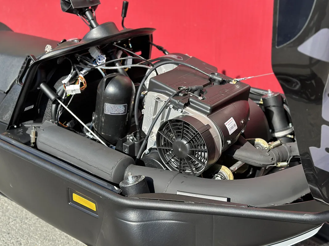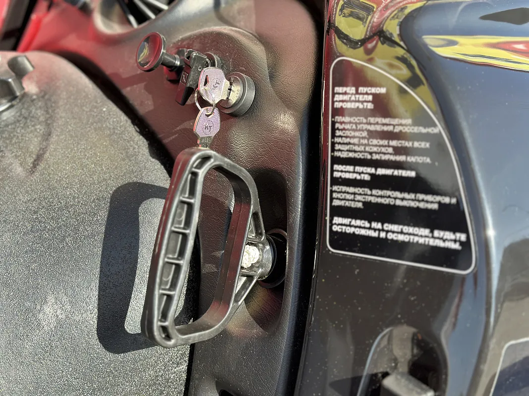 Из особенностей модели стоит отметить высокий руль, позволяющий активно маневрировать в положении стоя. У снегохода двухуровневое сидение и обогрев рукояток руля с курком газа. Высокое ветровое стекло с мощной фарой головного света.
