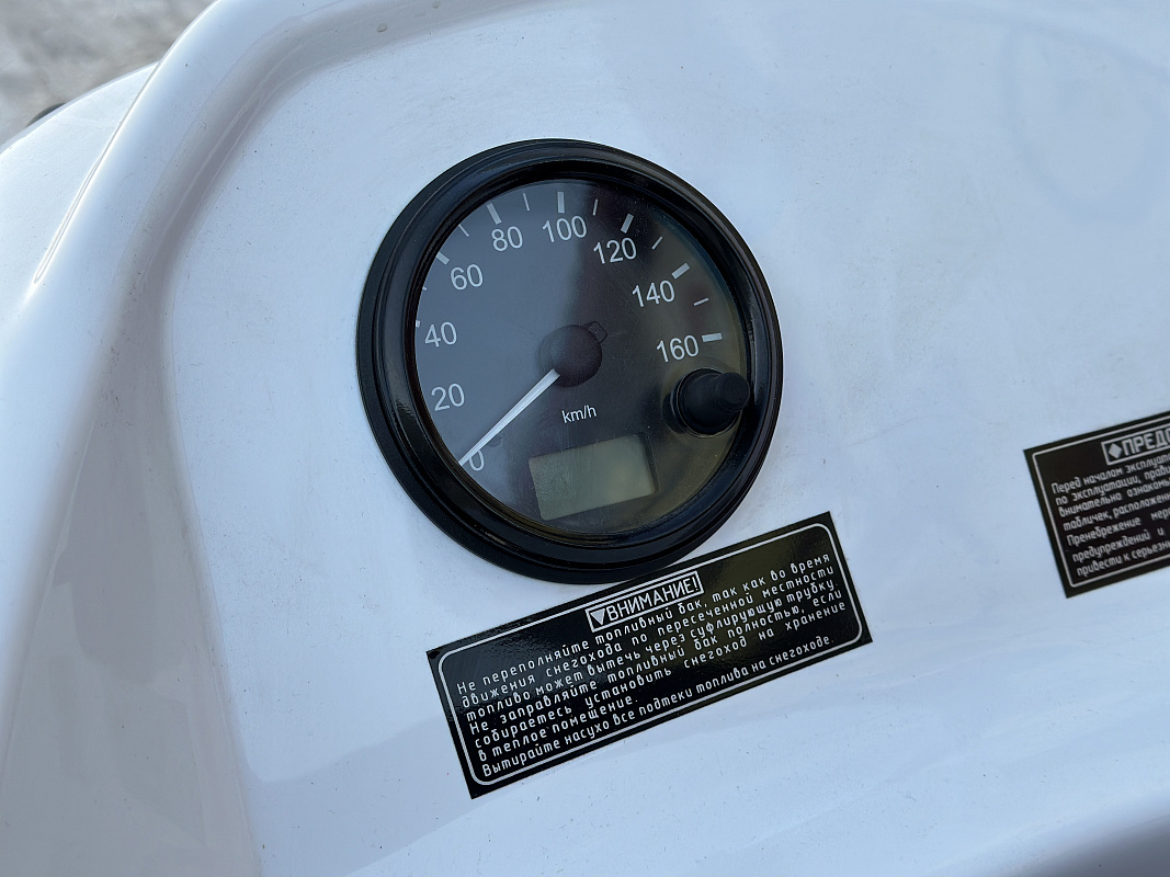 Модель оснащена двухуровневым сиденьем, обогревом рукояток и курка газа, механическим тормозом, фаркопом.