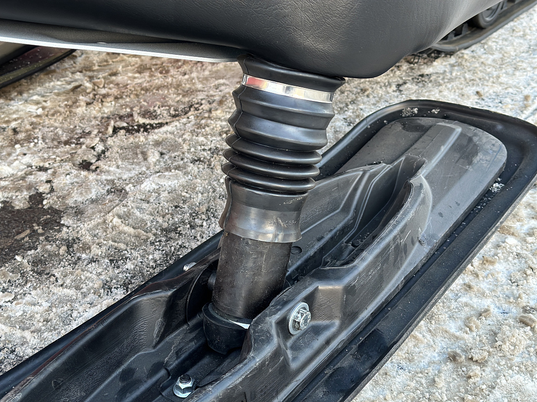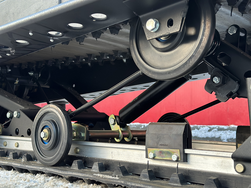 Передняя подвеска – телескопическая с ходом 150 мм. Ход задней подвески 190 мм. Гидропневматичсекий амортизатор с пружинами кручения обладает достаточным запасом энергоёмкости, чтобы обеспечить снегоходу плавный ход на любой поверхности.