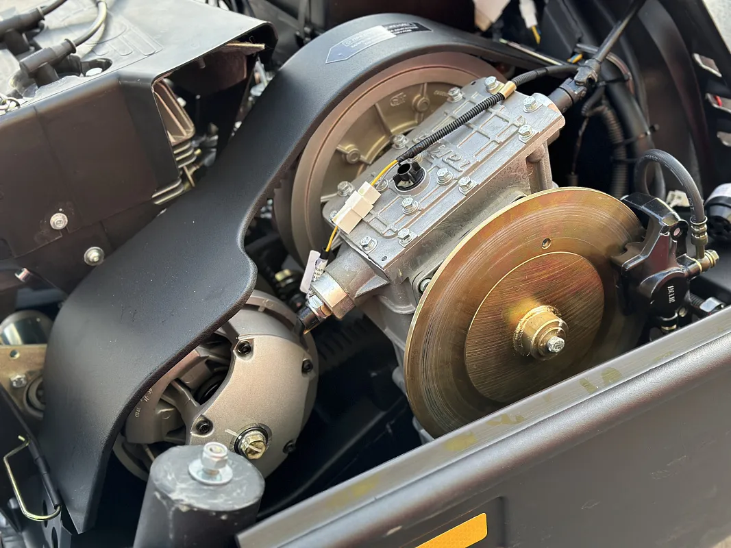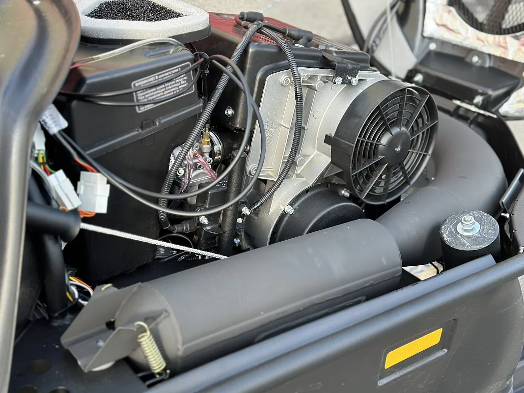 У ТАЙГА ВАРЯГ 550 V мощный двигатель воздушного охлаждения РМЗ-550 (55 л.с.) с двумя карбюраторами Mikuni, совместная система смазки, двухступенчатая коробка с пониженной передачей. Программируемая система зажигания DUCATI CDI отвечает за оптимальную работу двигателя во всех режимах. Использование лепесткового клапана на впускном коллекторе увеличило отдачу мотора на низких и средних оборотах.